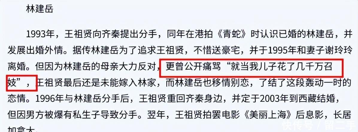 情路坎年前,王女士和齐秦因为合作电影《芳草碧连天》相识,两人在日常的相处下,慢慢产生了感情,之后便走在了一起。但两人并没有在一起很长时间,王女士就提出了分手,刚和秦先生分开没多久,就和已婚的林建岳走到了一起,成为了“三姐”。